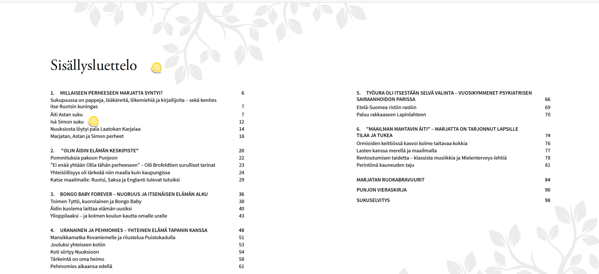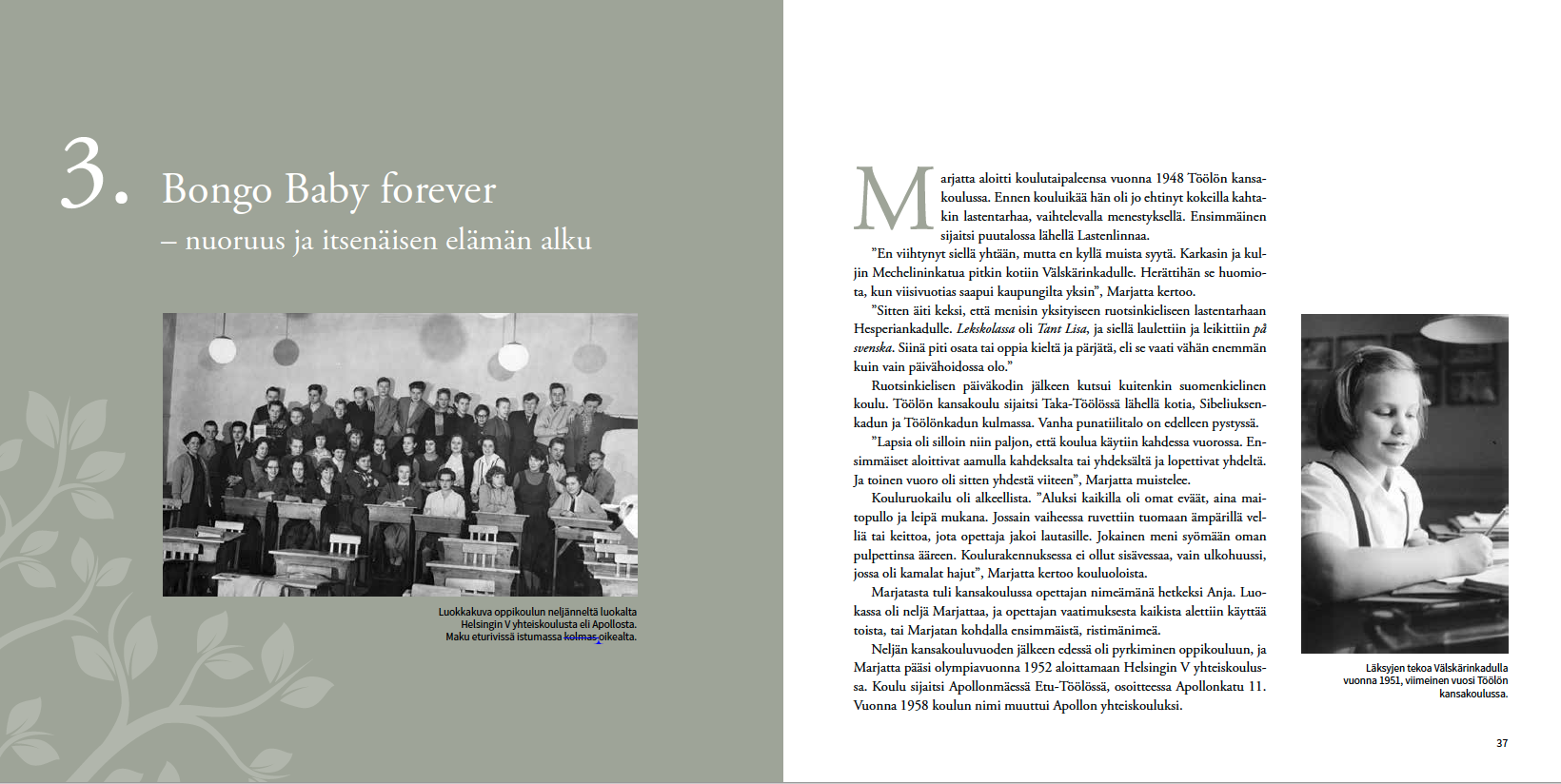 Tilaustyönä tehty elämäkerta Marjatta Ormion (os. Brofeldt) täyttäessä 80 vuotta vuonna 2021. Tapasimme Marjatan kanssa kymmenkunta kertaa, ja haastattelujen pohjalta syntyi satasivuinen kirja, jossa käydään läpi muistoja vuosikymmenten varrelta.